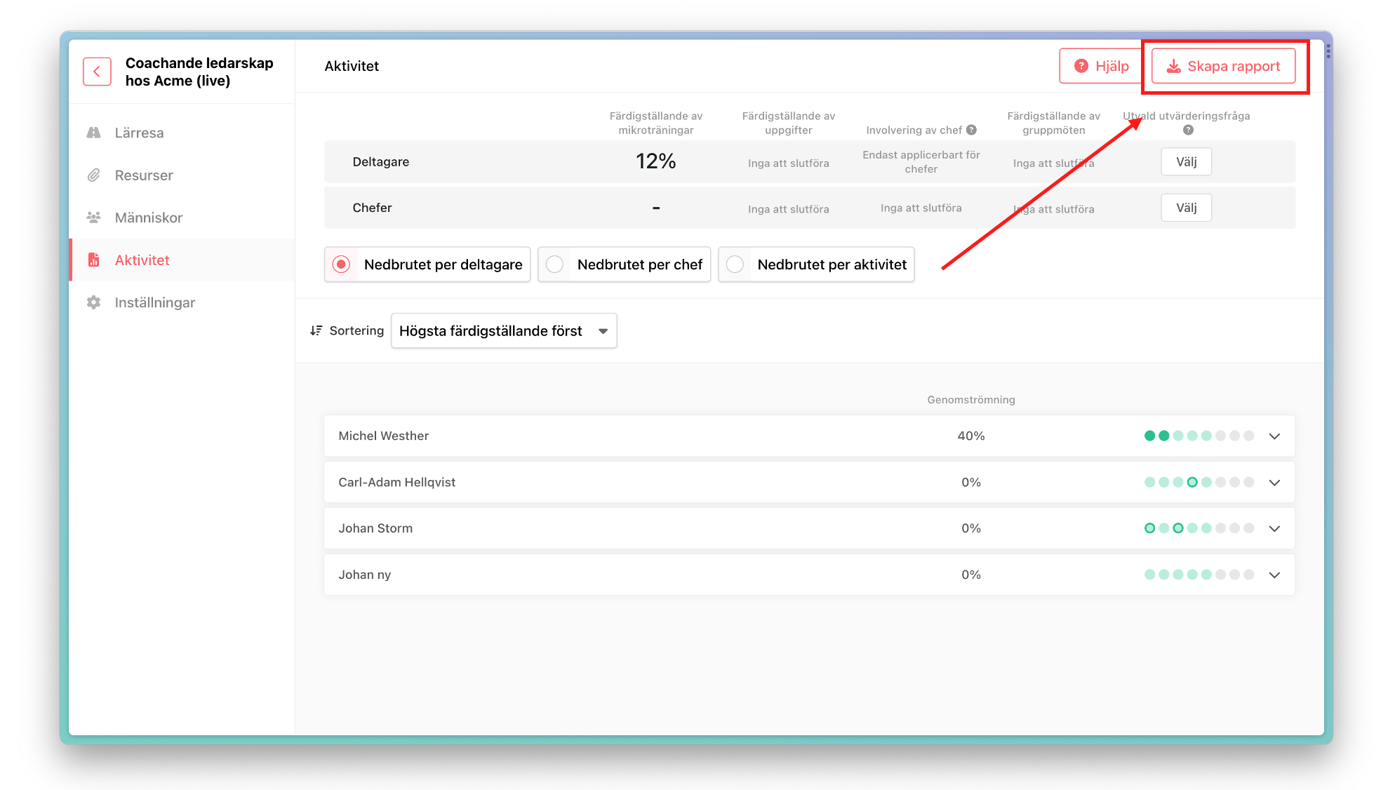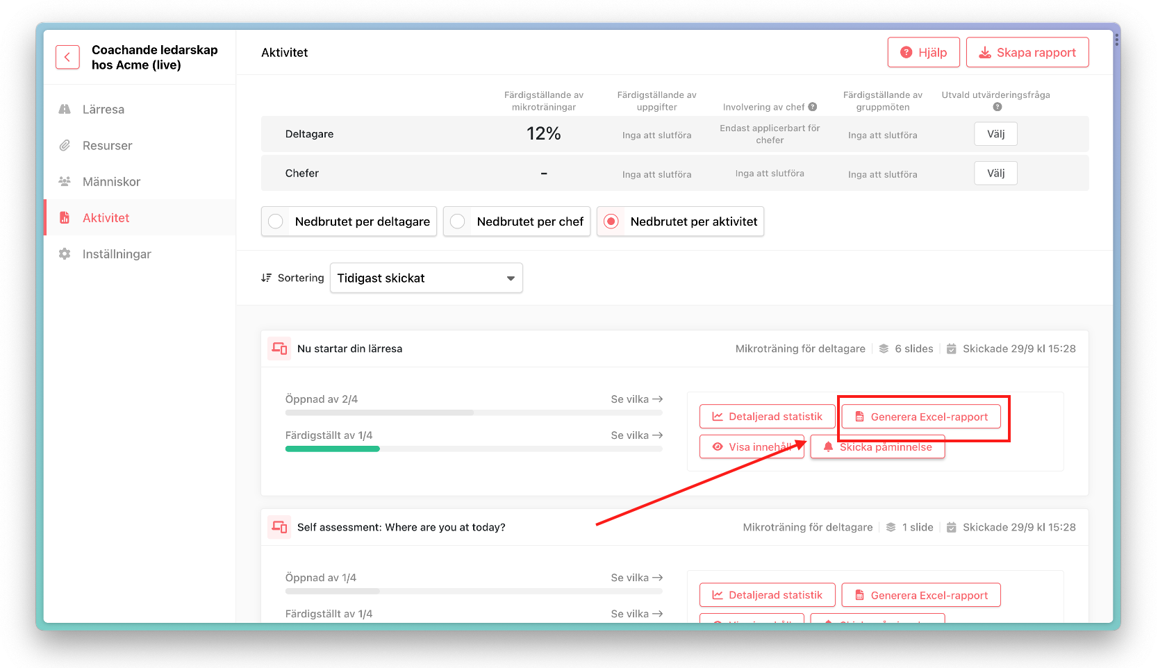 Såhär skapar du en rapport för en hel lärresa