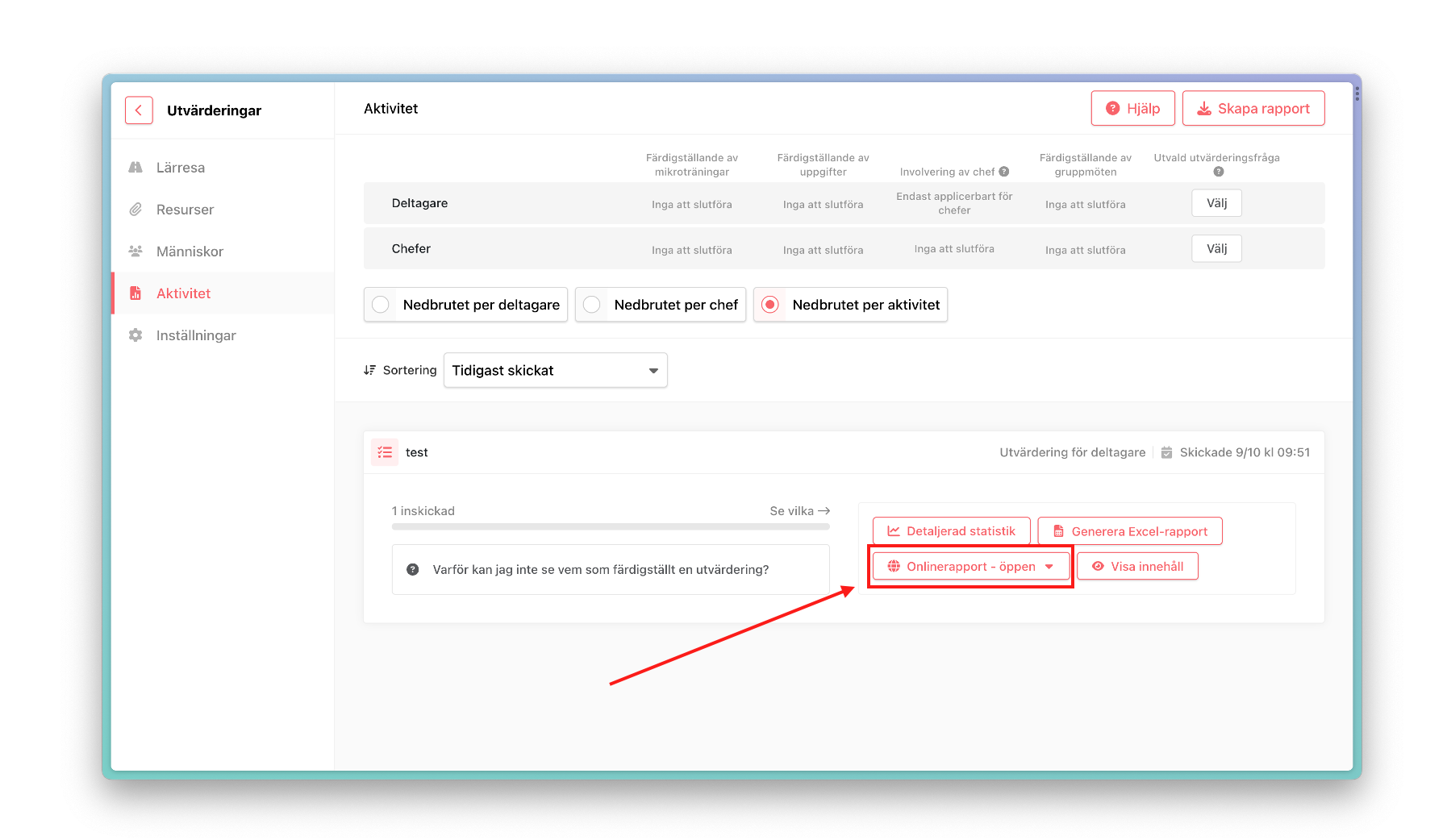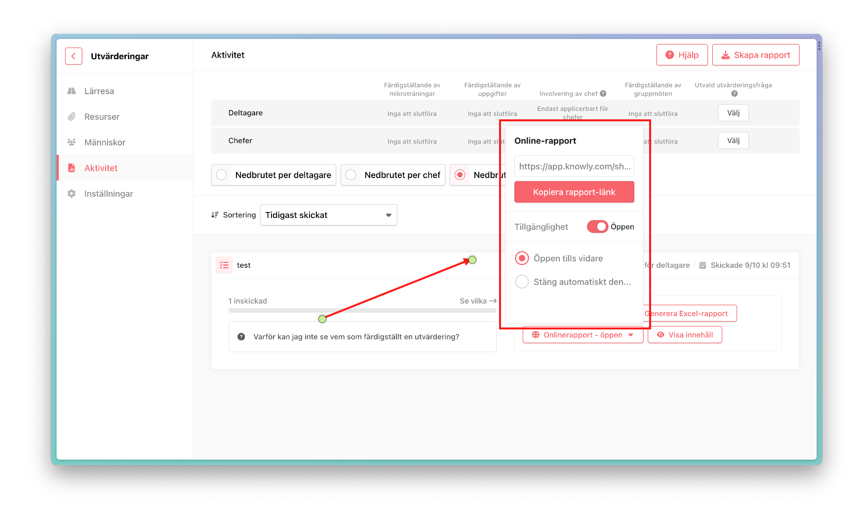 Såhär skapar du en delningsbar onlinerapport i en lärresa