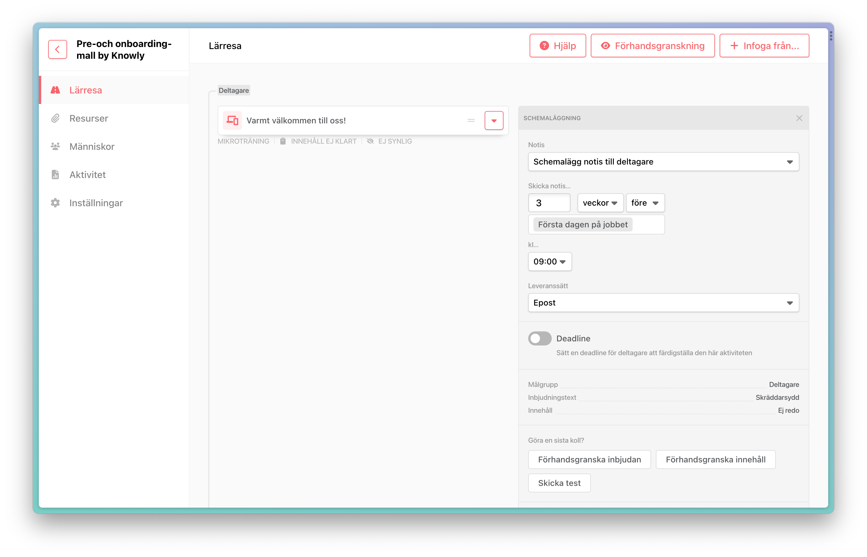 Schemaläggning av utskick i individuella lärresor
