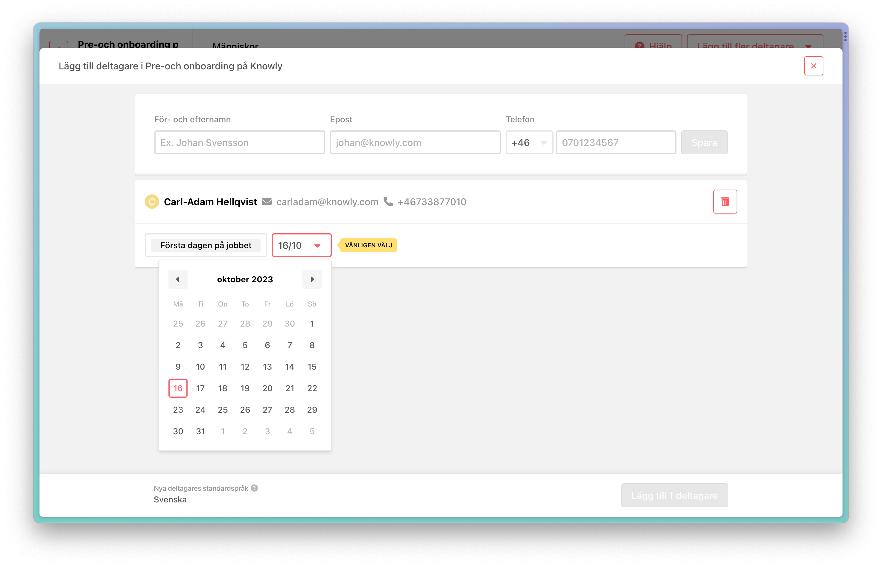 Skapa personliga scheman genom att lägga till deltagare