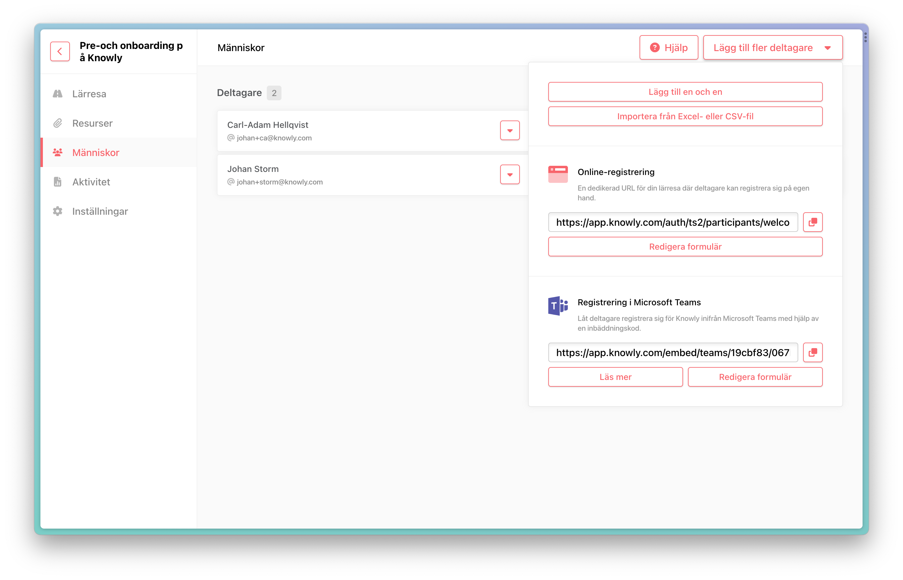 Använder du dig av självregistrering kommer ingen notis att skickas utöver bekräftelsemailet som tar dem in till lärresan.